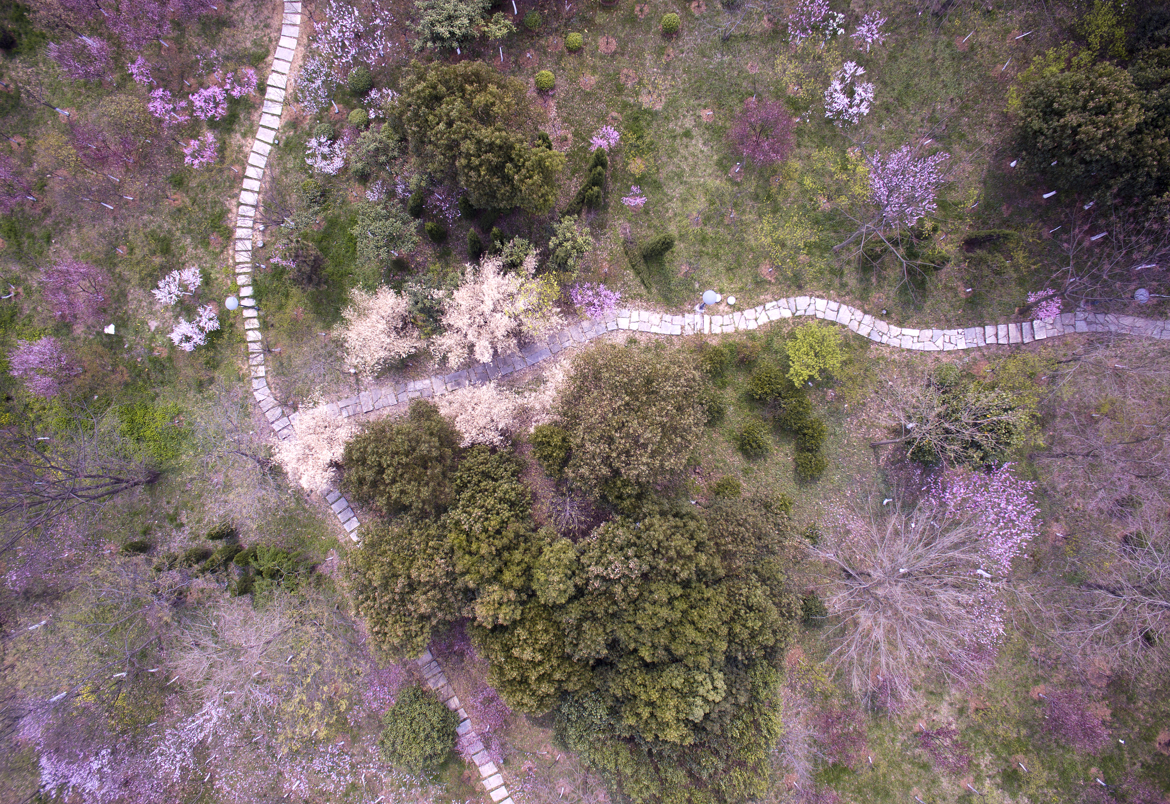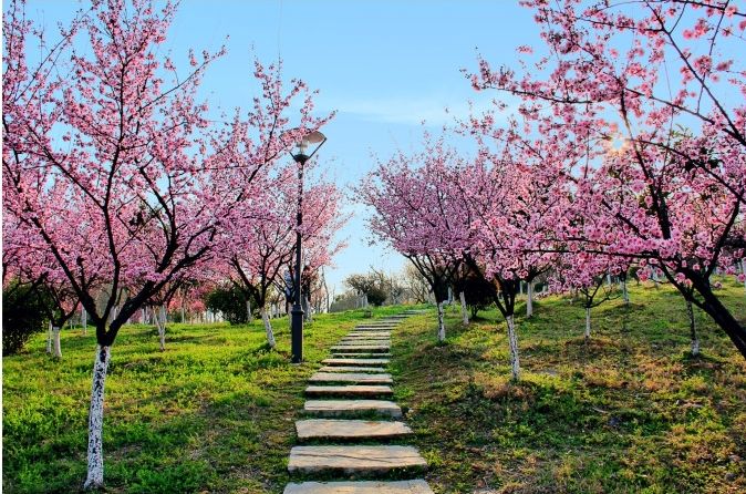 人在树中走,四季花中行,形成“春看校前夏看水,冬看三友秋看山”充满生命节奏的园林景观。在校前区除景观大树,广植樱花、杜鹃,建成桃园、李园,以喻桃李芬芳、人才成长。