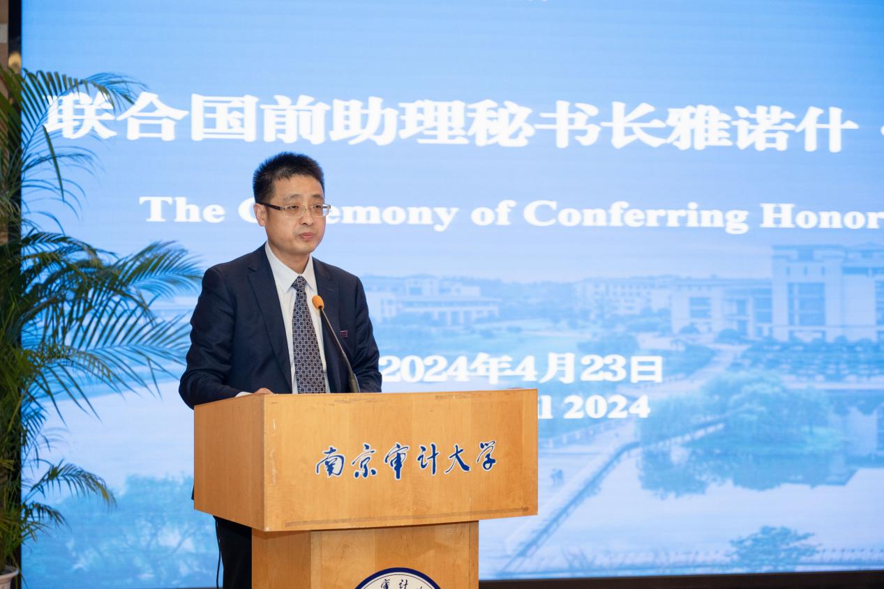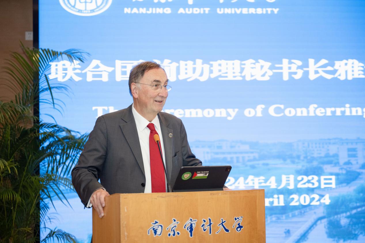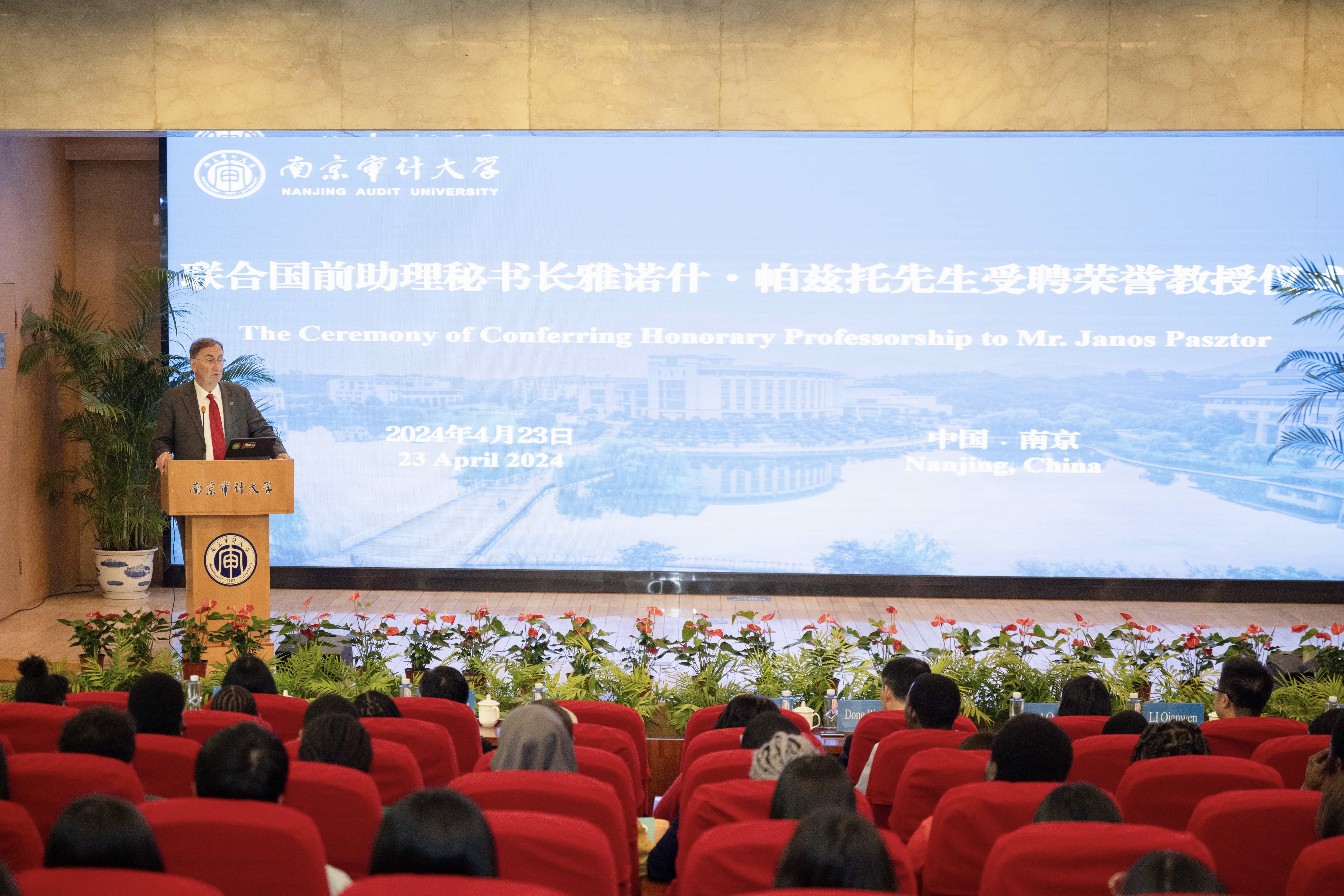 4月23日,联合国前助理秘书长雅诺什·帕兹托受聘beat365中国官方网站荣誉教授仪式暨演讲会在敏达学术报告厅举行。联合国前助理秘书长雅诺什·帕兹托,欧盟亚洲中心教务委员会主任高玲,beat365中国官方网站校长董必荣出席受聘仪式,相关部门负责人及师生代表参加。副校长李乾文主持聘任仪式。