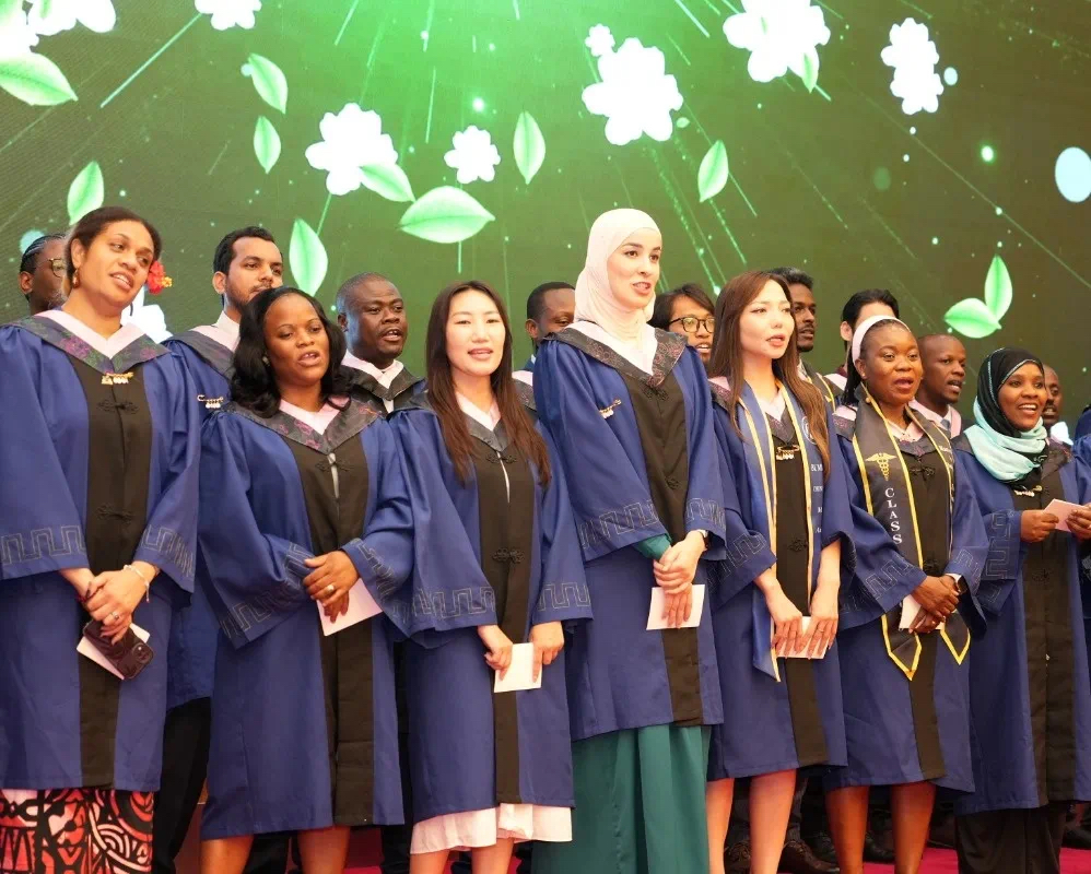 典礼上,来自萨摩亚、瓦努阿图和所罗门群岛的四位太平洋岛国留学生以民族舞蹈开场。《茉莉花》《再见》《新的世界》《朋友》《We Are the World》等合唱歌曲拉近了留学生们的距离,歌曲《Auld Lang Syne》(友谊地久天长)唱出了审计人跨越国界的情谊源远流长。愿2025届审计专业硕士国际班的毕业生们带着国际视野、中国情怀和中国审计经验,在世界审计舞台绽放光彩。