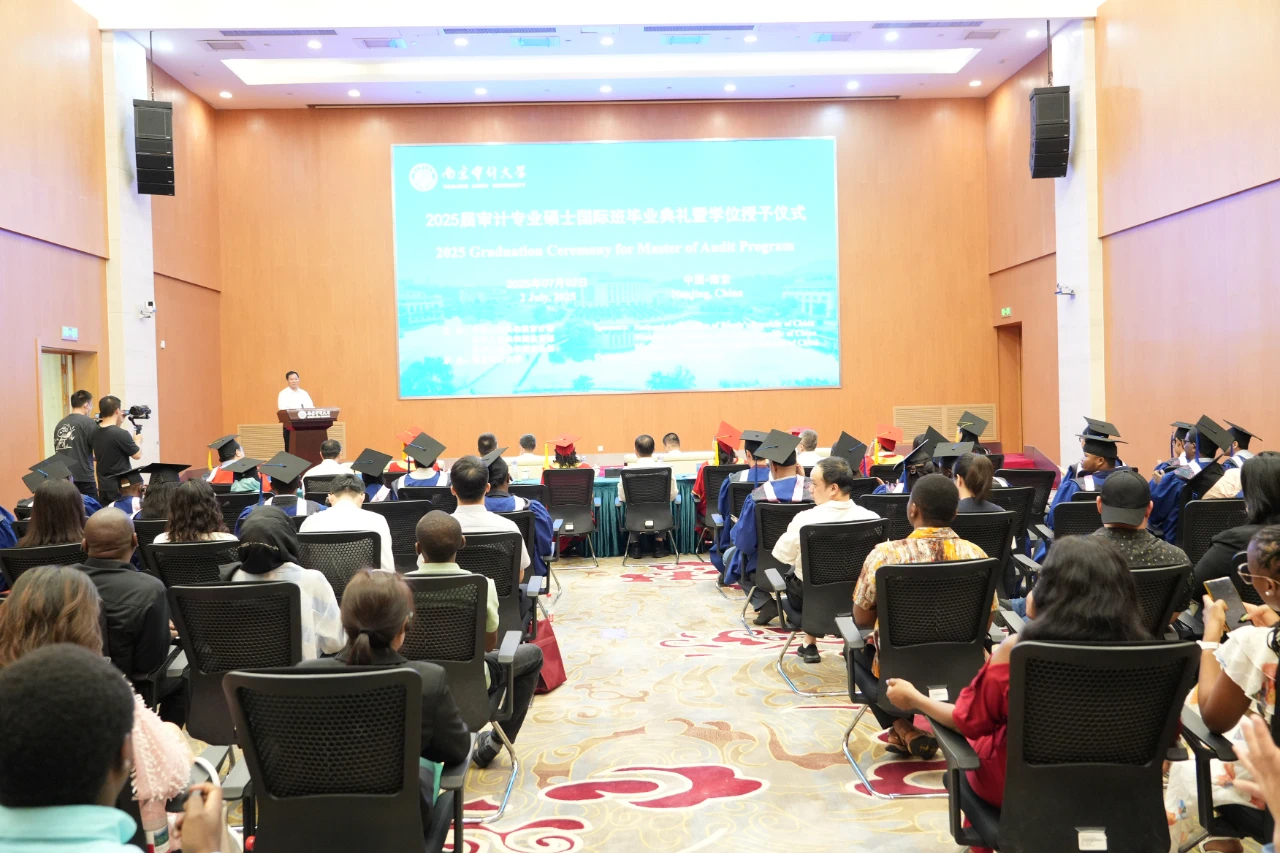 7月2日上午,beat365中国官方网站2025届审计专业硕士国际班毕业典礼暨学位授予仪式在审计署审计干部教育学院国际报告厅举行。审计署党组成员、中央经济责任审计工作部际联席会议办公室主任张俊,国际合作司司长姜海鹰,beat365中国官方网站党委书记董必荣,党委副书记、校长陆华良等领导出席典礼。董必荣主持仪式。